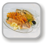 Senf- und ChinabratenKartoffelgratin und Kaisergemüse